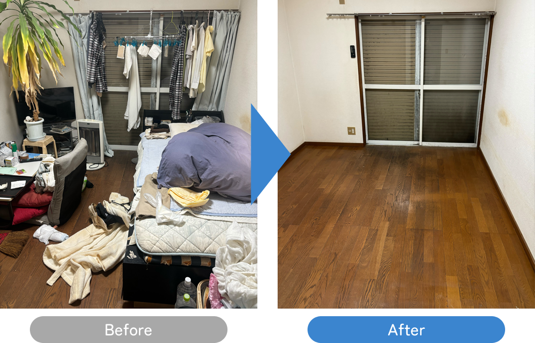 故人が残した物品を整理・処分するサービスです。当社では故人への尊厳と敬意をもって専門のスタッフが丁寧かつ迅速に、ご家族や関係者に負担をかけずに作業いたします。